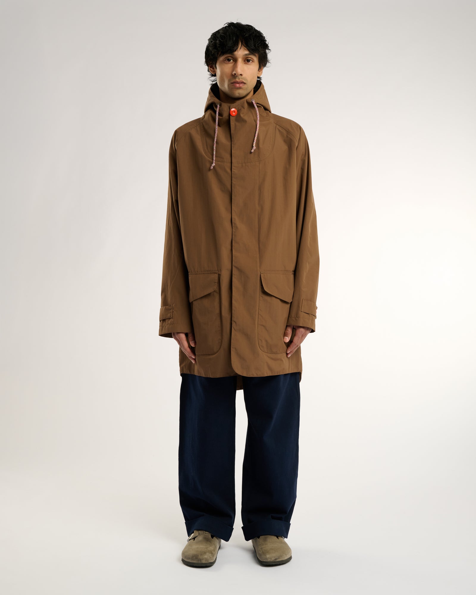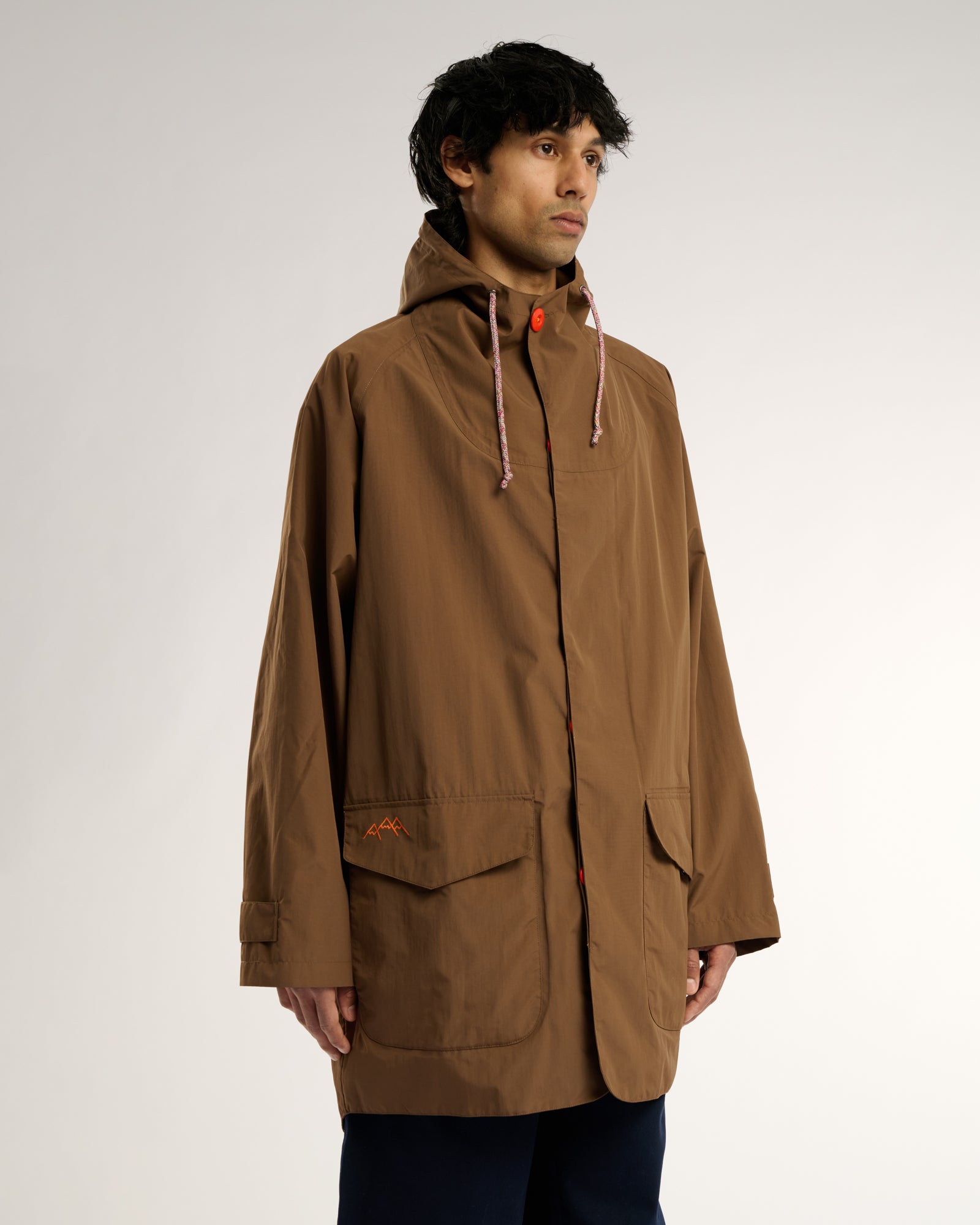 The Dreich Coat is inspired by 1970s mountain parkas and is named after the Scottish word dreich, which describes gray, damp weather.